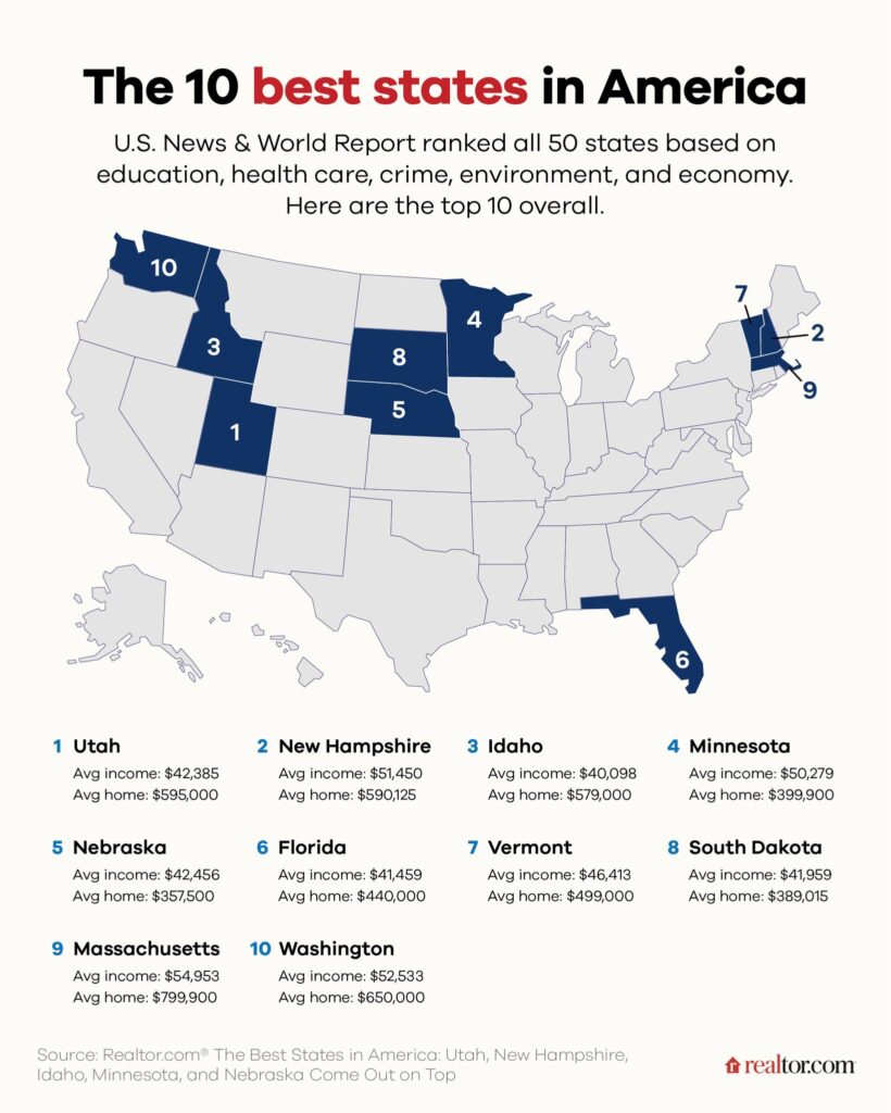 Los últimos resultados de U.S. News & World Report destacaron a los 10 estados que hoy ofrecen el mejor equilibrio entre calidad de vida, economía, educación, salud, medio ambiente y seguridad.